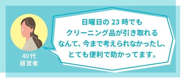 ボックスから受け取り所定の仕上がり日以降に来店して、ボックスから衣類を受け取り!受け取りもバーコードをかざすだけ!