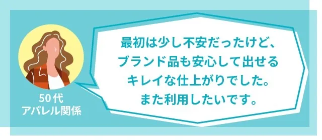 クリーニング業界の標準であるクリーニング事故賠償基準に則り、適切に対応させていただきますので、安心してご利用ください。